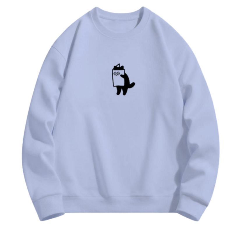 - Cartoon Cat Print Crewneck Sweatshirt